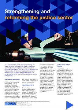 As a core element of its rule of law programming, the OSCE Mission to Bosnia and Herzegovina is committed to strengthening the overall justice sector in Bosnia and Herzegovina. In encouraging the effective implementation of relevant criminal justice reforms, the Mission aims to promote judicial independence and equality before the law while enhancing public confidence in the judiciary.