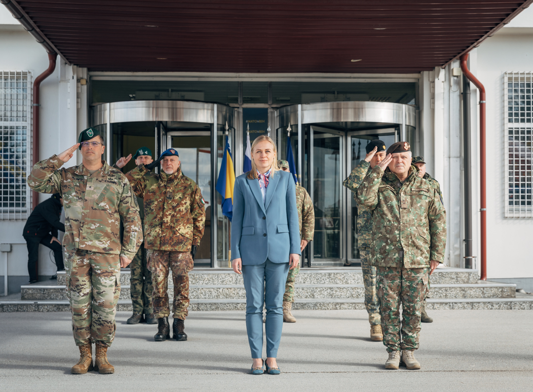 OSCE Chairperson-in-Office Elina Valtonen during her visit to Camp Butmir in Sarajevo.