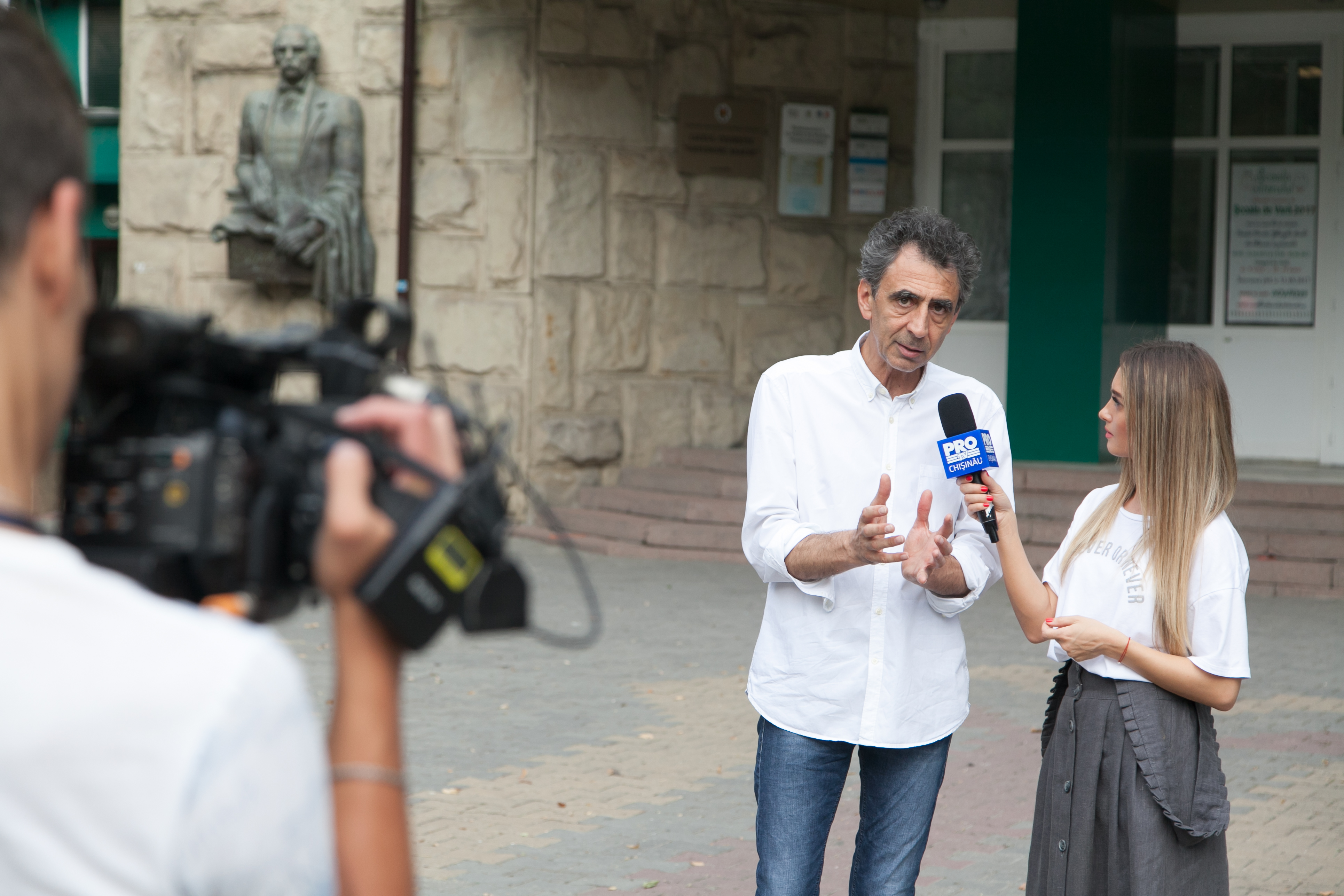 Mihai Fusu, director of the Art Centre Coliseum, gives an interview to the press before the launch of the play, Chişinău, 11 July 2017.