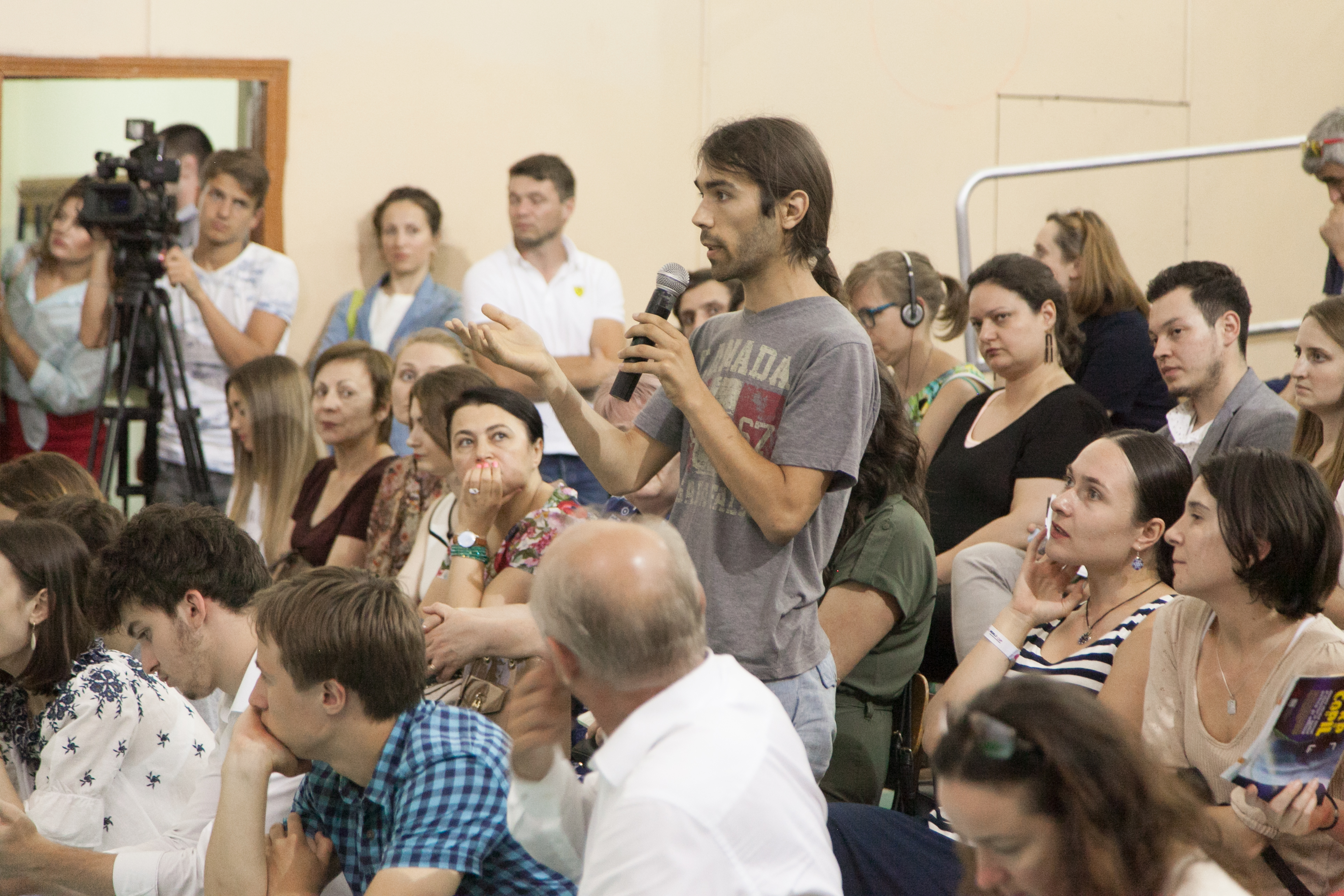 The audience discusses measures to prevent online sexual exploitation of children and to recognize when they might be at risk, Chişinău, 11 July 2017.