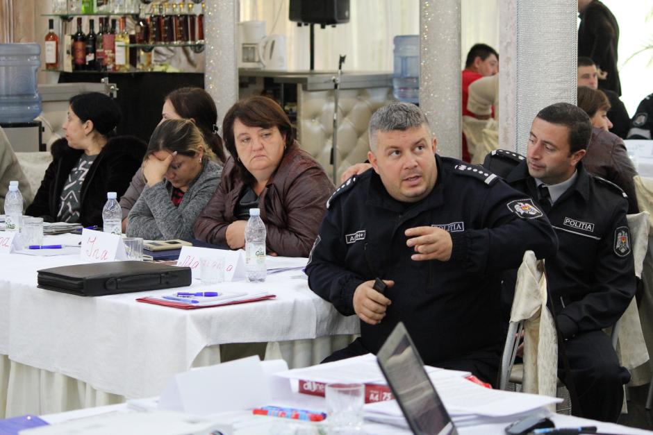 A police officer speaking at the OSCE training session on combating domestic violence for law enforcement, Floresti, Moldova, 6 October 2017.