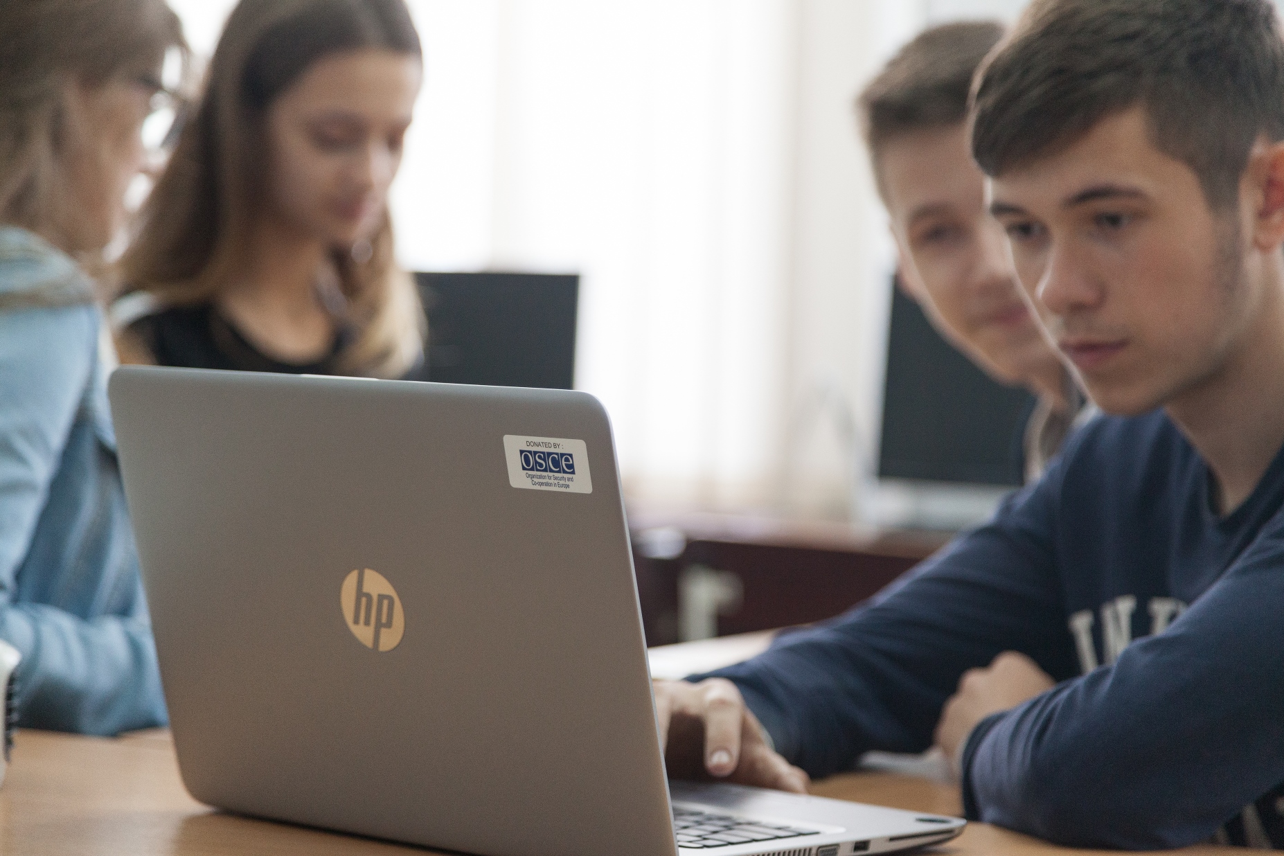 Pupils working on the OSCE-donated equipment at Lucian Blaga Theoretical Lyceum in Tiraspol, 17 May 2019.