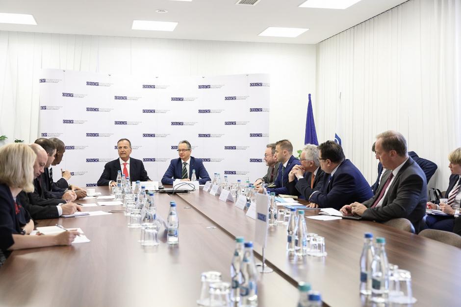 The mediators and the observers in the Transdniestrian Settlement Process at the OSCE Mission to Moldova premises ahead of their meetings with the Moldovan and Transdniestrian leadership, Chisinau, 12 July 2019.