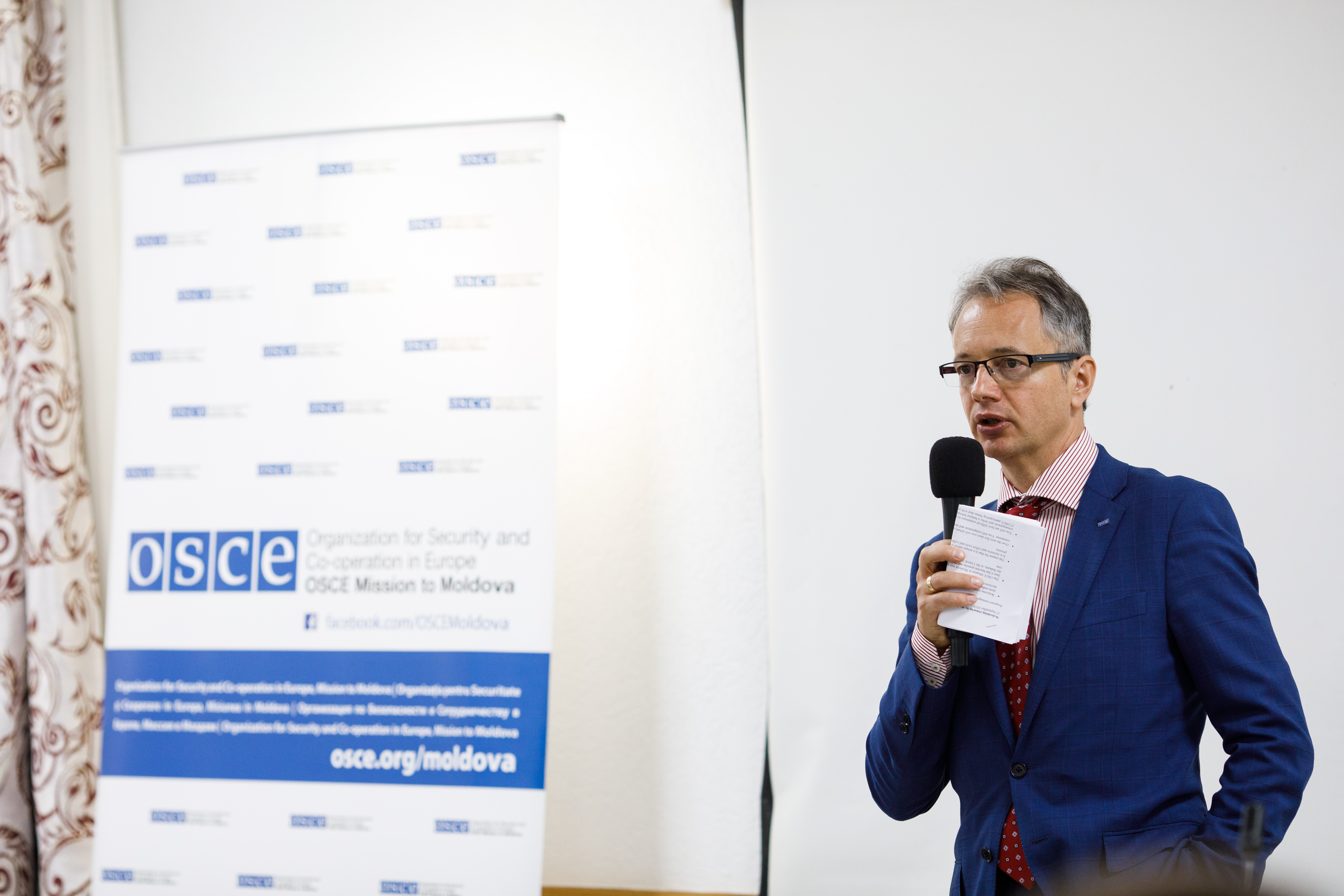 Claus Neukirch, Head of the Mission, welcomes the participants and encourages them to actively engage in discussions, Vadul-lui-Voda, Moldova, 26 September 2019.