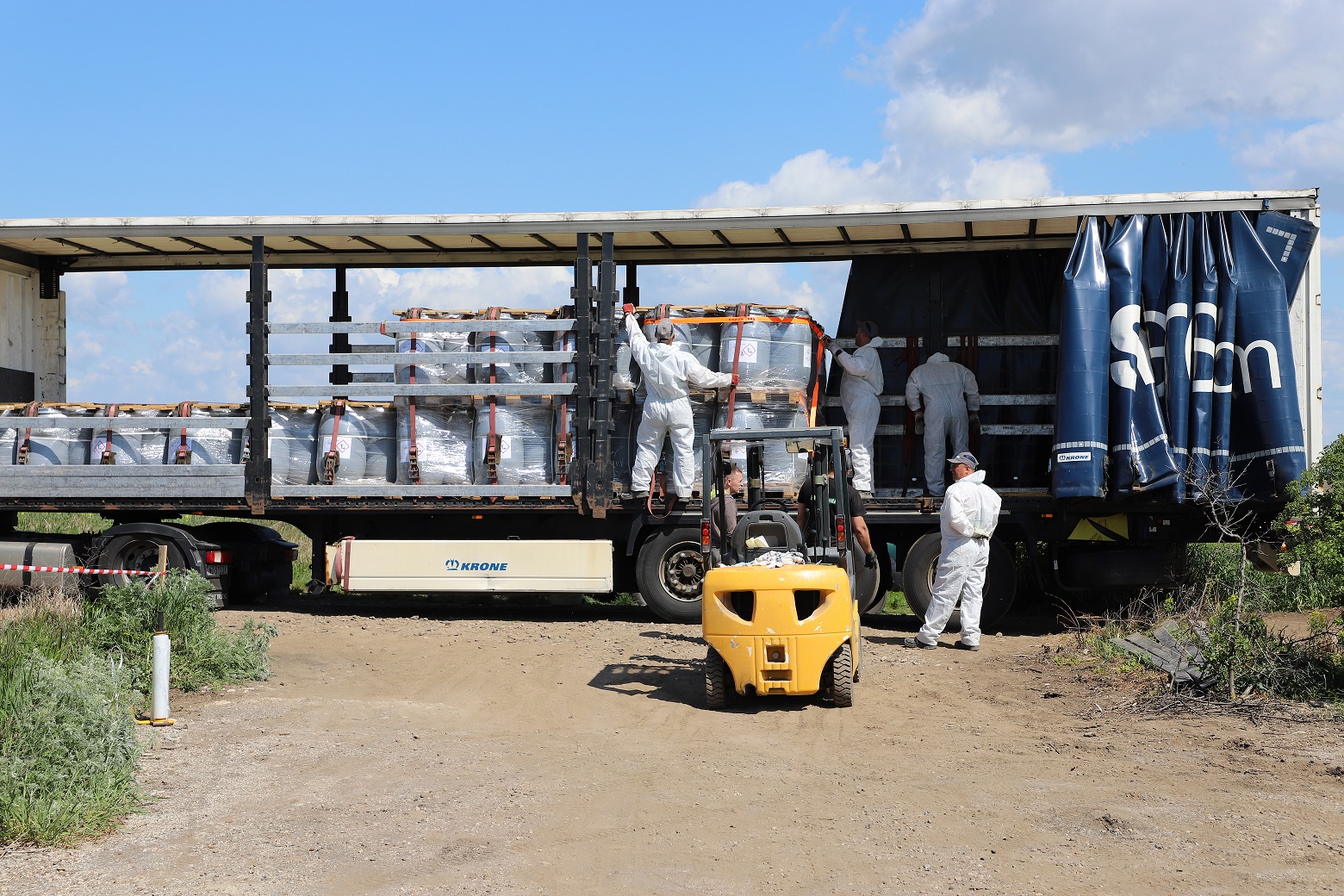 OSCE contractor employees secure hazardous pesticides for transportation to incineration facility, 2022.
