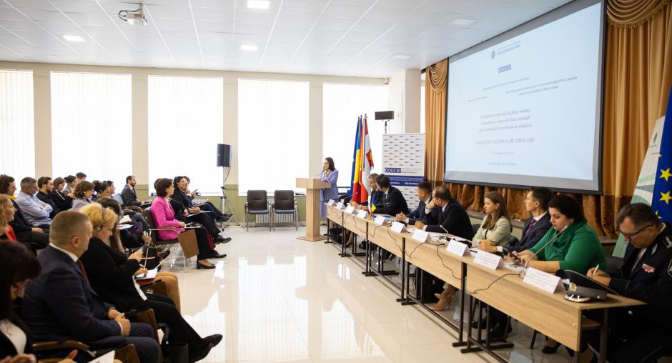 The OSCE Mission to Moldova organized this 18-22 September exercise in co-operation with the Moldovan State Chancellery and the OSCE Office of the Special Representative and Co-ordinator for Combating Trafficking in Human Beings. This simulation exercise was hosted by the Ștefan cel Mare Academy of the Ministry of Internal Affairs and organized within the framework of the Mission’s project “Ending trafficking in human-beings by fostering multi-agency collaboration and strengthening the civil society organizations capacity across both banks of the Dniester/Nistru River”, aimed at enhancing of co-ordination mechanisms to prevent and respond in an integrated manner to trafficking in human beings.