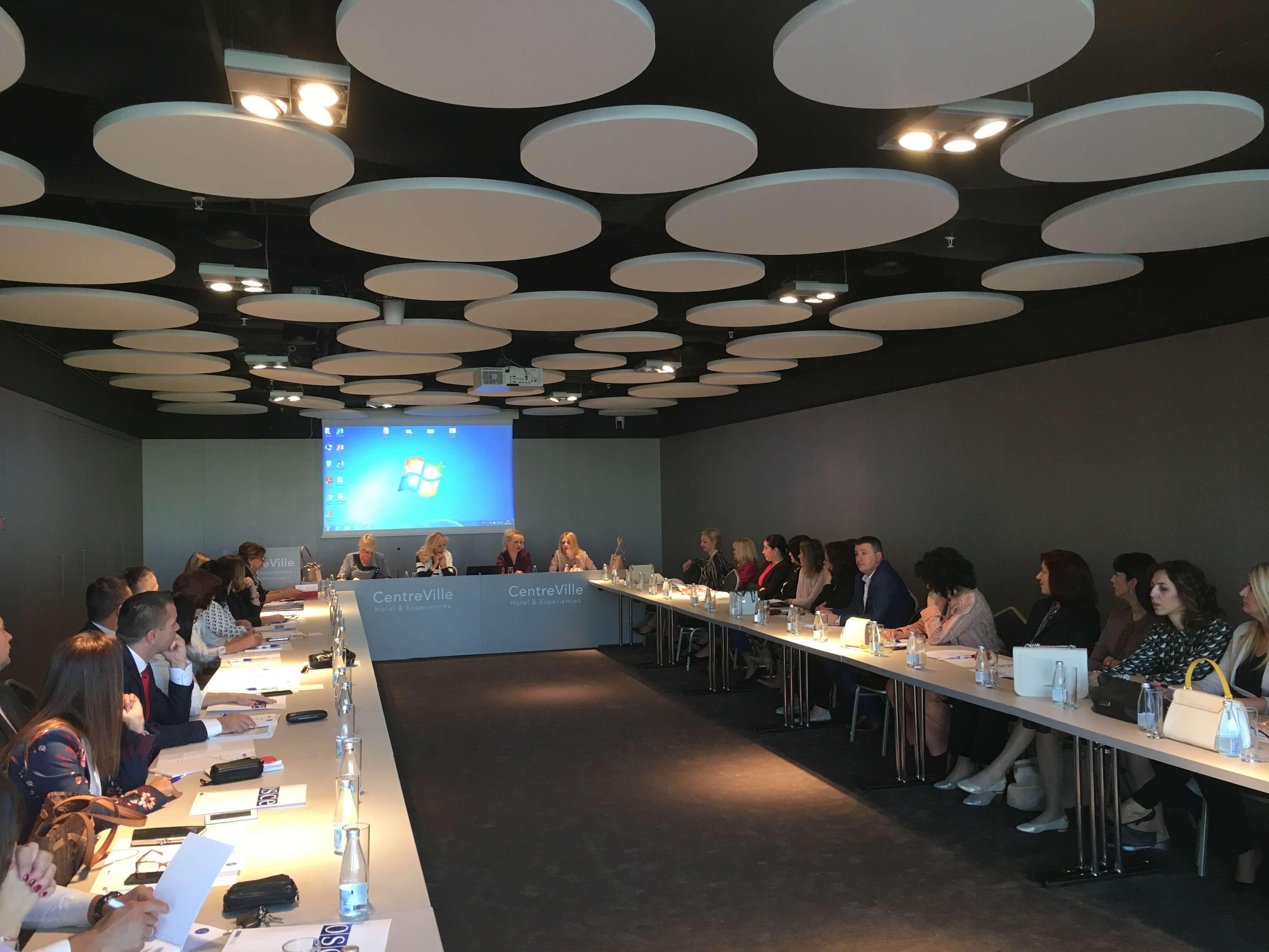(l-r) Judges of Supreme Court of Montenegro Ranka Vuković, Vesna Jočić and Nataša Božović and Chair of Judiciary Training Centre Senka Danilović addressing the participants during the training on law on civil procedure, Podgorica on 2 -3 October 2017.