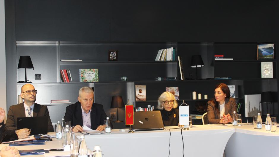 (l-r) Expert Albert Cernigoj, Slavko Stojanović, Secretary of the National Security Council and Maryse Daviet, Head of the OSCE Mission to Montenegro opening the Workshop to review National Strategy on preventing and combating terrorism, money laundering and terrorist financing in Podgorica, Montenegro, 10 December 2018.