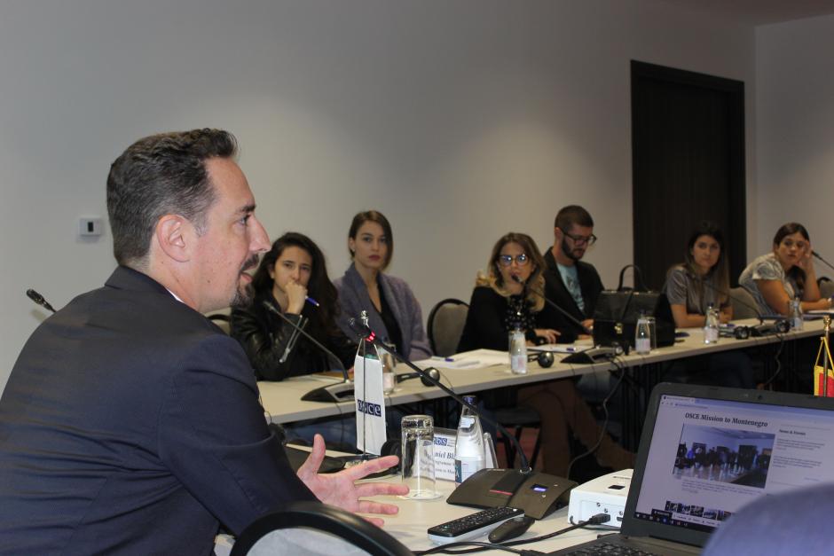 The OSCE Mission to Montenegro Media Programme Manager Daniel Blank opens a three-day workshop on investigative journalism in Podgorica, 9 October 2019.