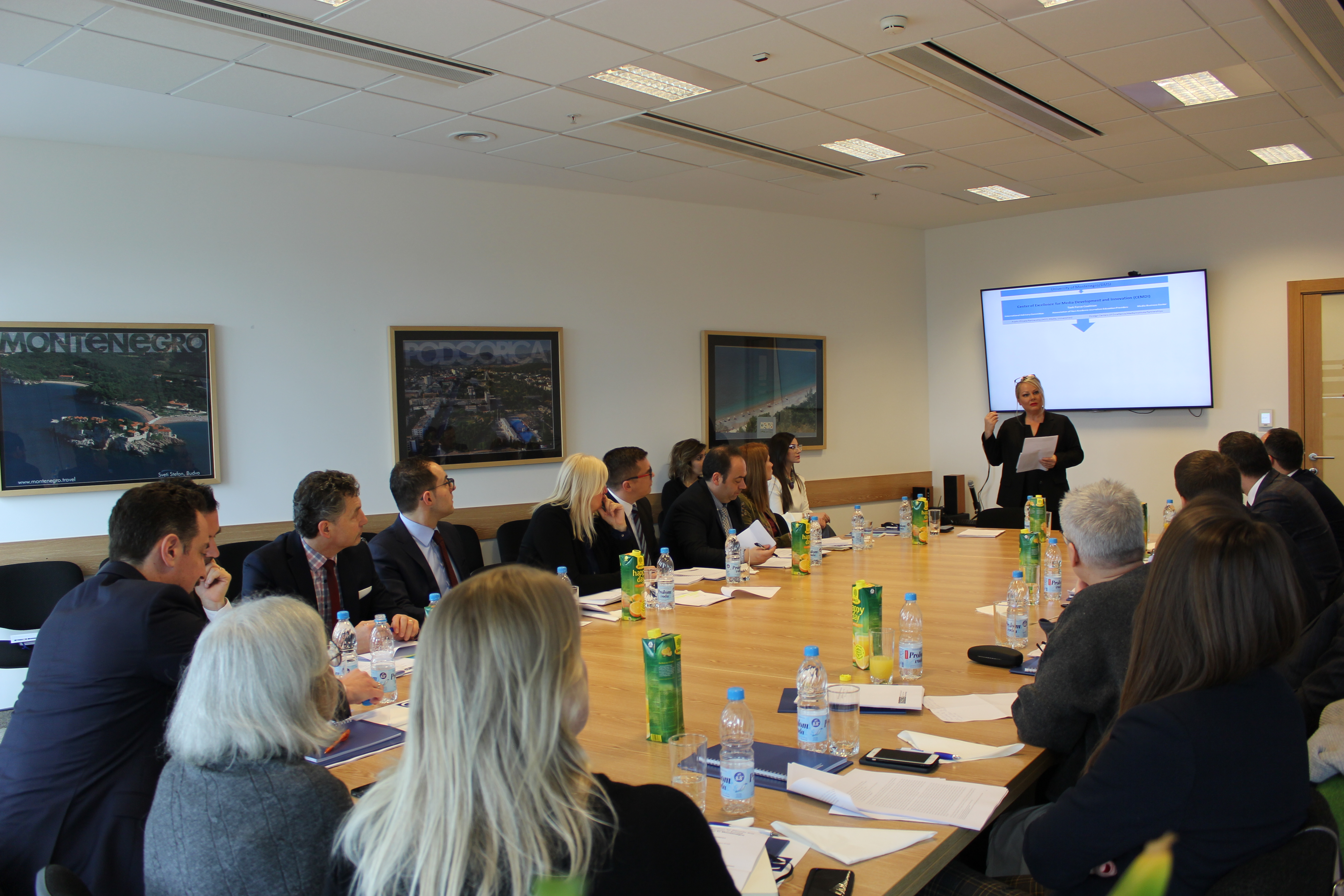 Media expert Isabella Kurkowski presents a comprehensive OSCE-supported assessment report “Media Training Models for practice-oriented journalism education in Montenegro” to the representatives of embassies and the Ministry of Foreign Affairs of Montenegro, Podgorica, 11 February 2020.