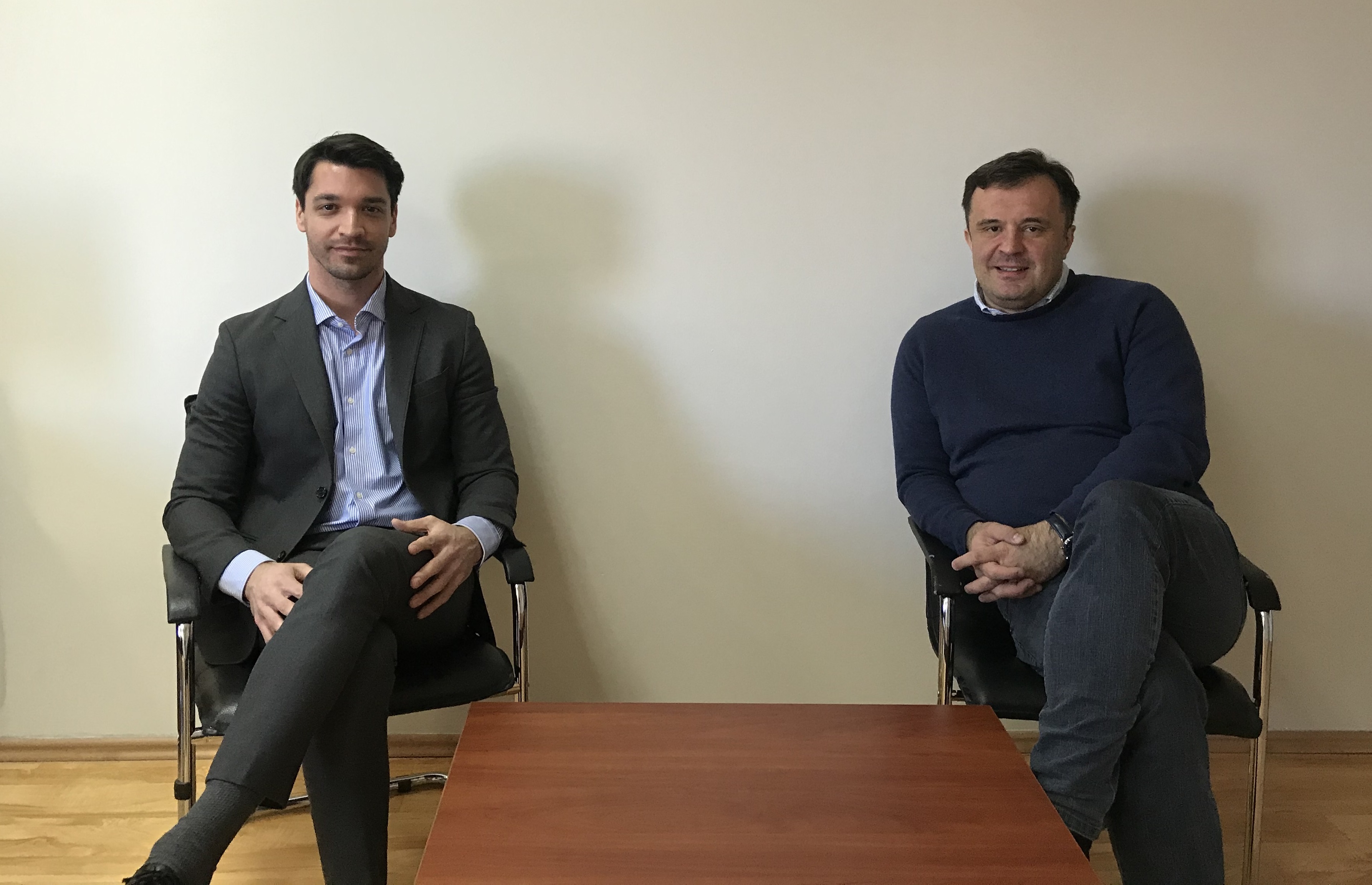 Darko Brajović, National Programme Officer, OSCE Mission to Montenegro (l), meets with Zlatko Vujović, chair of the governing board, the Centre for Monitoring and Research to discuss electoral integrity and possibilities for co-operation, Podgorica, 17 February 2020.