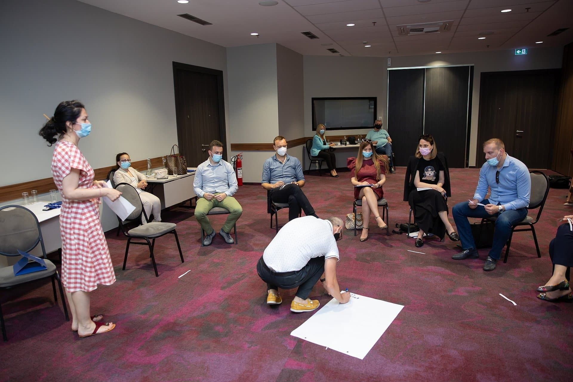 Staff members of the Parliament of Montenegro discuss effective communication and good presentation techniques at the peer-to-peer workshop organised by the OSCE Mission to Montenegro in Podgorica on 27 July 2021.
