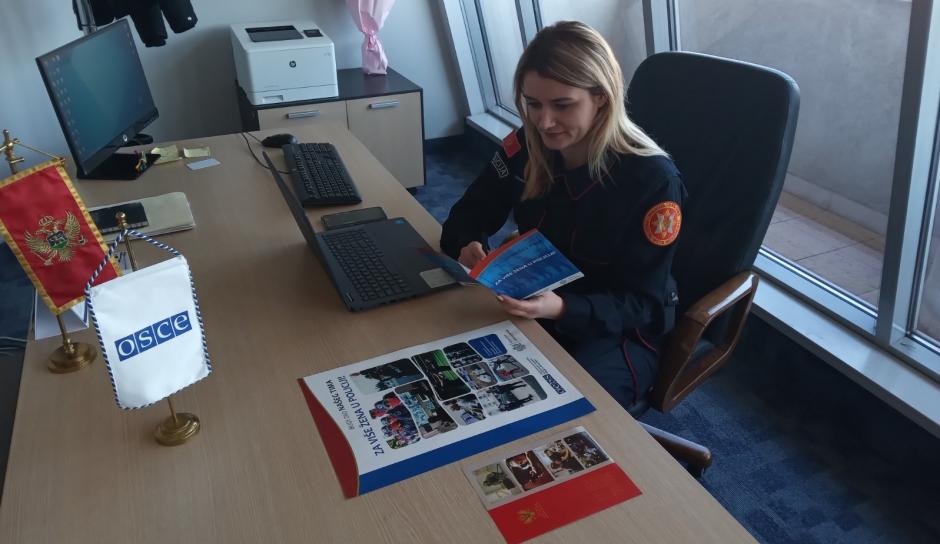 Aleksandra Peković, women police officer and member of the Women Police Association of Montenegro, uses technical equipment provided by the OSCE Mission to Montenegro, Podgorica, 11 February 2022.