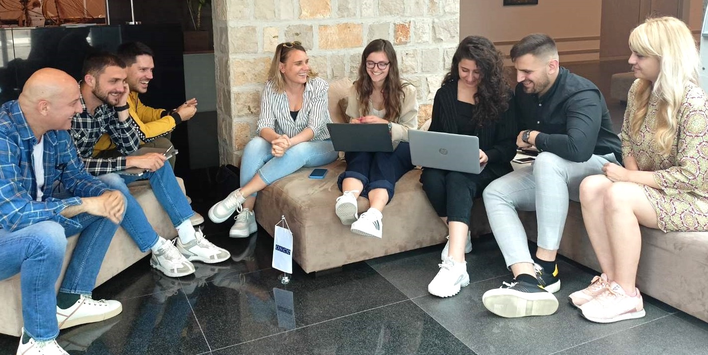 Members of the Youth Network of Montenegro discuss how to draft project proposals for funding, as part of the OSCE Mission to Montenegro-supported three-day workshop in Budva, Montenegro, 7 May 2022.