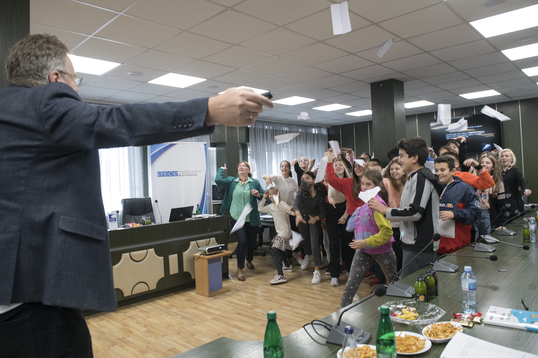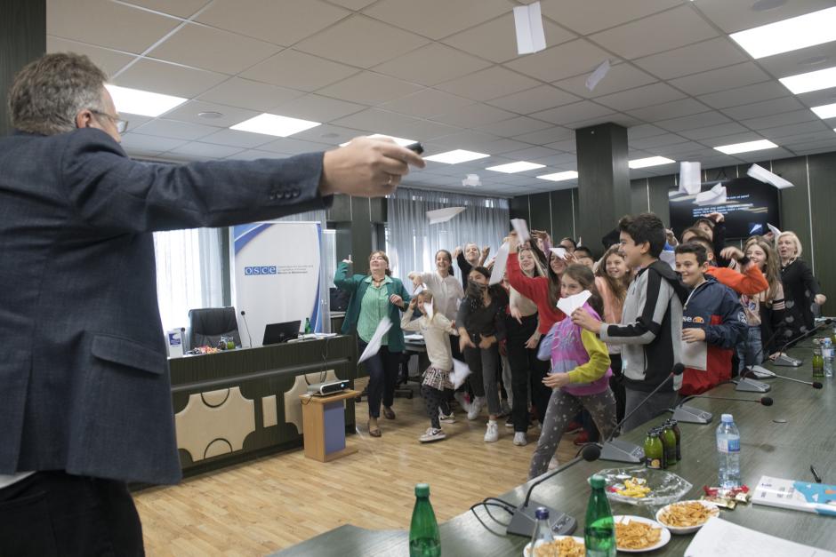 Students from “Maksim Gorki” elementary school in Podgorica during an event which presented the Recommendations for Media and Digital Literacy, Podgorica, 24 October 2022.