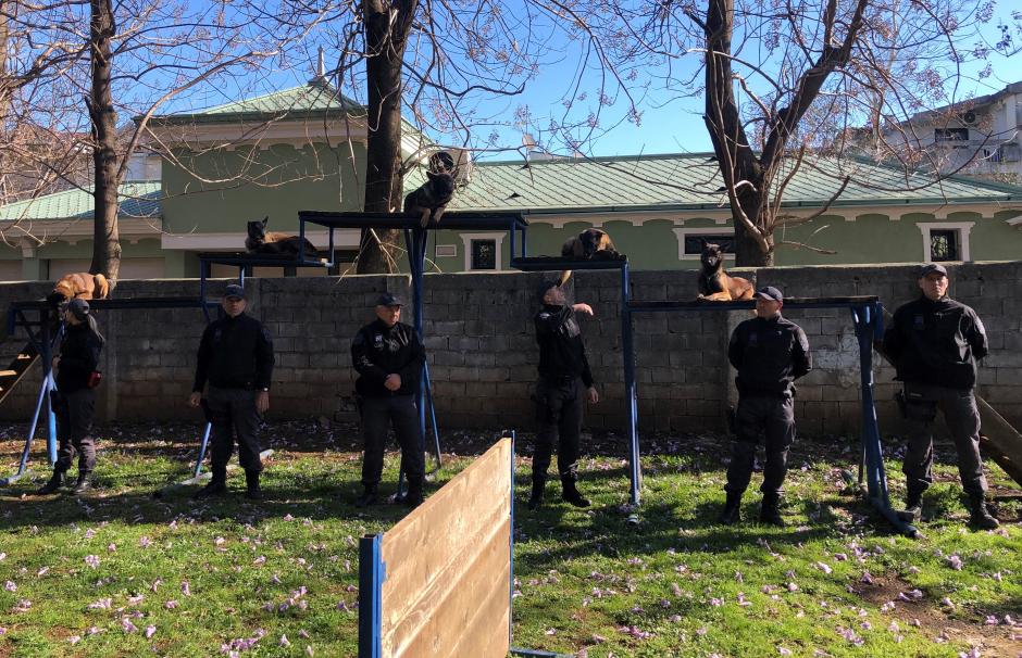 Members of the Team for guide and dog training in the Special Police Unit with their K9 dogs, Podgorica, 31 March 2023.