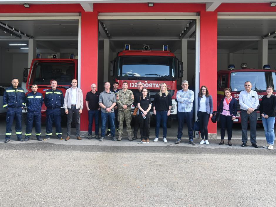 Representatives of the Swedish Civil Contingencies Agency, the OSCE Mission to Montenegro and the Ministry of Defense of Montenegro in a visit to Montenegrin firefighters in Podgorica, 10 May 2023.