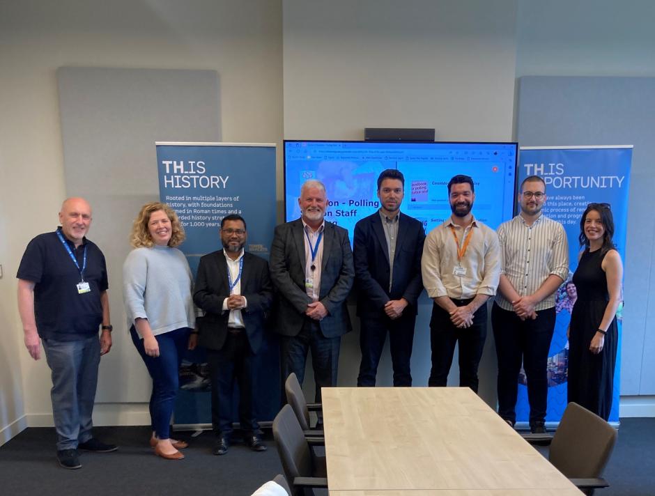 (c-r) Nikola Mugoša, Chair of State Election Commission (SEC), Darko Brajović, the Mission's Acting Democratization Programme Manager and Damir Suljević, a commissioner representing NGOs and academia, during their study visit to London, United Kingdom, 18 August 2023.
