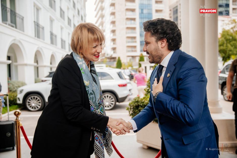 OSCE Secretary General Helga Maria Schmid meets with Prime Minister of Montenegro Dritan Abazović during her visit to Montenegro, Budva, 7 September 2023.