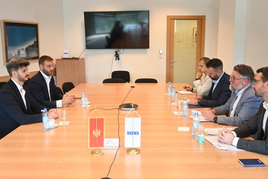 (l-r) Co-chairs of the Parliamentary Committee on Comprehensive Electoral Reform, Vasilije Čarapić and Nikola Rakočević, at the meeting with Head of the OSCE Mission to Montenegro, Jan Haukaas and his associates, Podgorica, 23 July 2025.