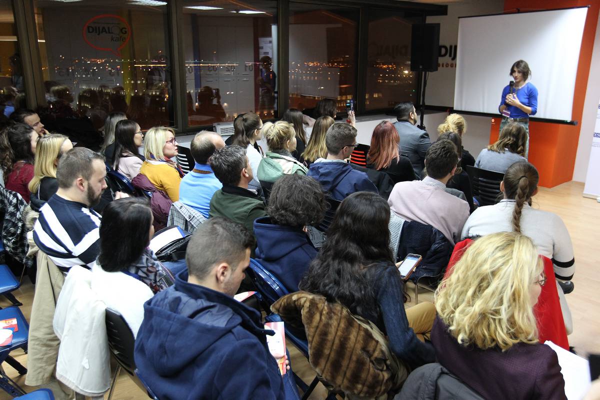 After a screening of a short documentary "Kismet", author of the project “Women of Albania and Serbia: We Can Do It!”, Minja Marđonović, starts a discussion about the film, youth co-operation and gender equality as preconditions for long-lasting peace and progress, Belgrade, 13 December 2017.