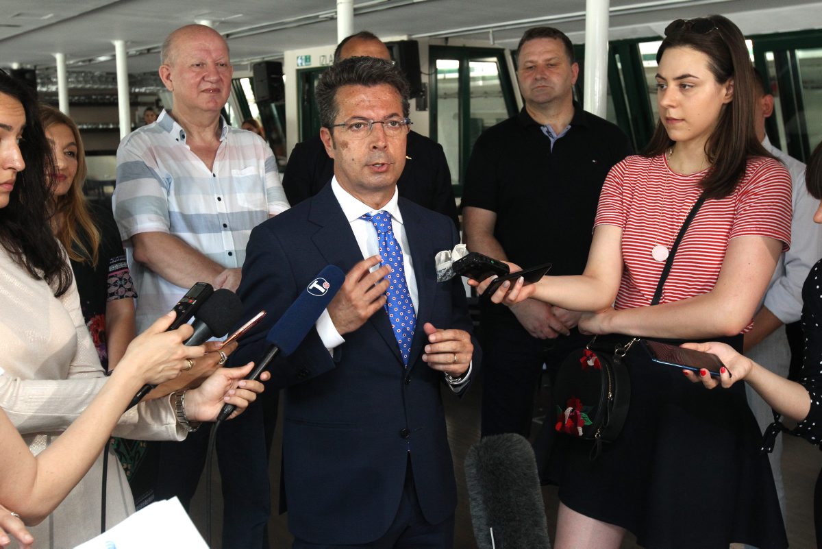 In his statement to the media, Ambassador Andrea Orizio, stresses the relevance of engaging the children from south Serbia in joint initiatives like the cruise organized by the Co-ordination Body for the Municipalities of Preševo, Bujanovac and Medveđa, for a mixed group of ethnic Albanian, Roma and Serbian students, Belgrade, 26 June 2019.