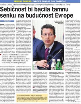 Interview of the Head of the OSCE Mission to Serbia Ambassador Orizio for the Serbian daily newspaper Danas, 28 April 2020. (In Serbian)