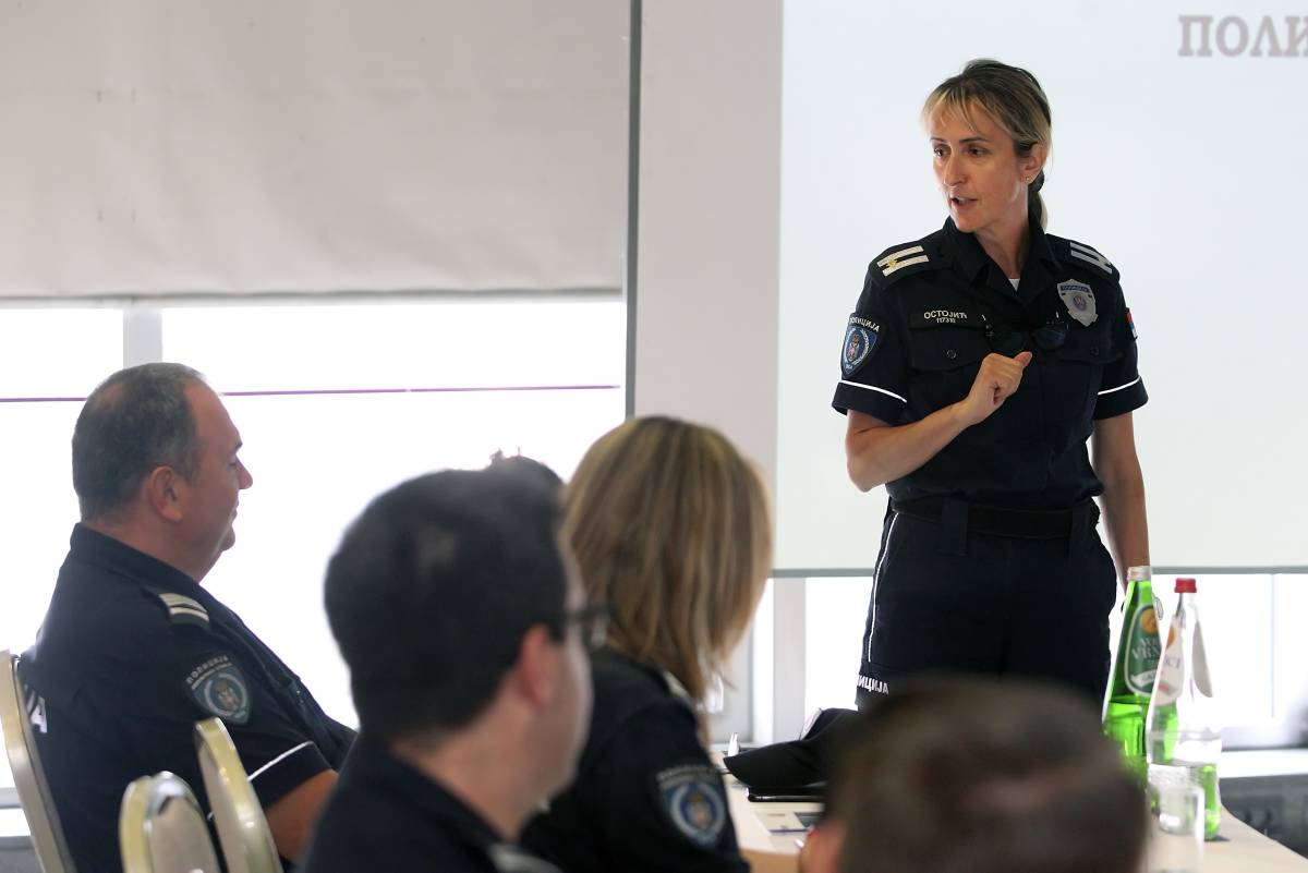 Participants of the OSCE Mission-supported training for school police officers discuss ways to improve safety in school environment, Belgrade, 30 August 2024.