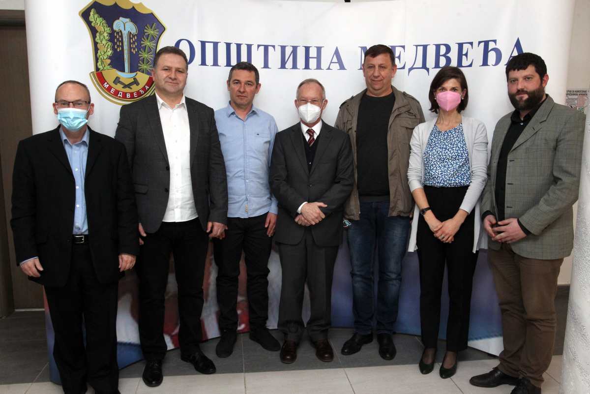 Head of the OSCE Mission to Serbia Ambassador Jan Braathu discusses issues relevant for Medveđa with municipal officials and local community representatives, Medveđa, 24 February 2022