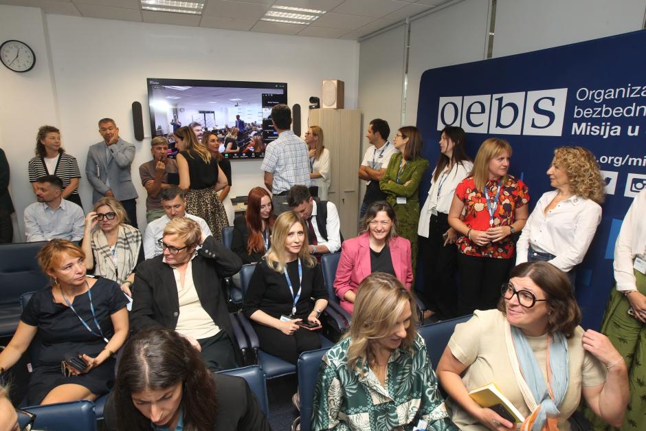 OSCE Mission to Serbia's staff gather for a town hall meeting with Chairperson-in-Office and Minister for Foreign Affairs of Finland Elina Valtonen, during her visit to the Mission, Belgrade, 15 September 2025