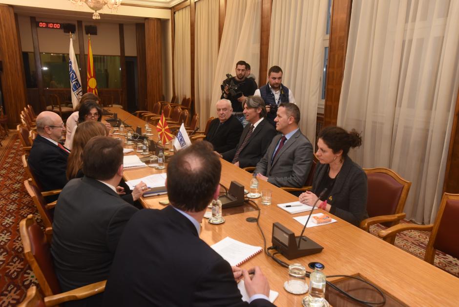 OSCE Secretary General Lamberto Zannier (l) meets with leader of Alliance for Albanians Ziadin Sela and party representatives, Skopje, 9 March 2017.