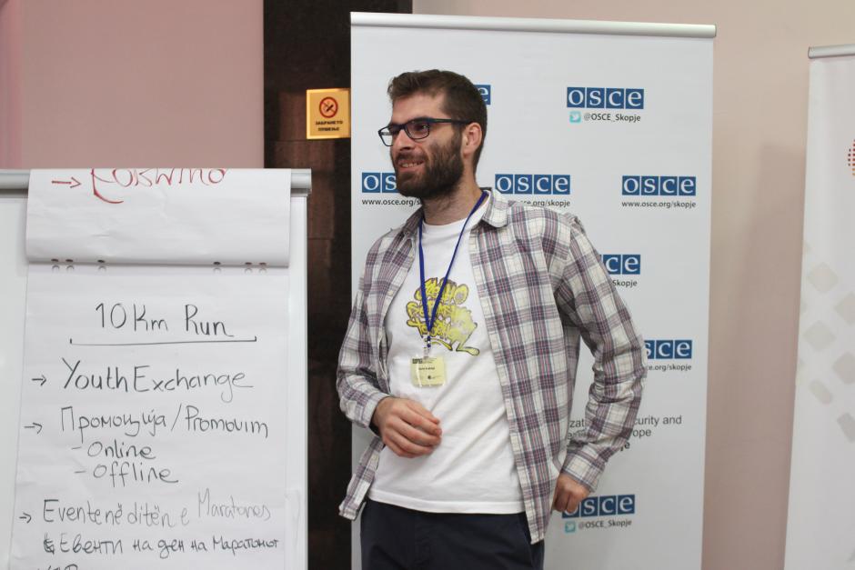 Trainer from the NGO Center for Intercultural Dialogue explaining to the participants how to organize inter-cultural event at the Confidence Building Youth Workshop in Ohrid, 2-5 September 2017