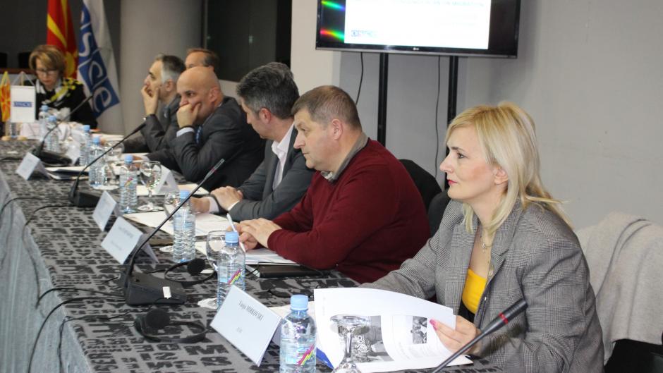 Participants at the roundtable discussion, organized by the OSCE Mission to Skopje, set forth recommendations to develop comprehensive National Contingency Plan on Migration, Skopje, 13 March 2018.