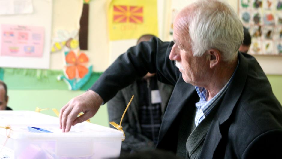 A citizen casting his vote during local elections, Skopje, 24 March 2013