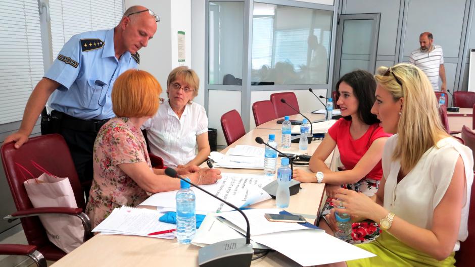 During an OSCE-supported roundtable, a police officer discusses ways how to increase the role of women in community safety, Tetovo, 11 July 2016.