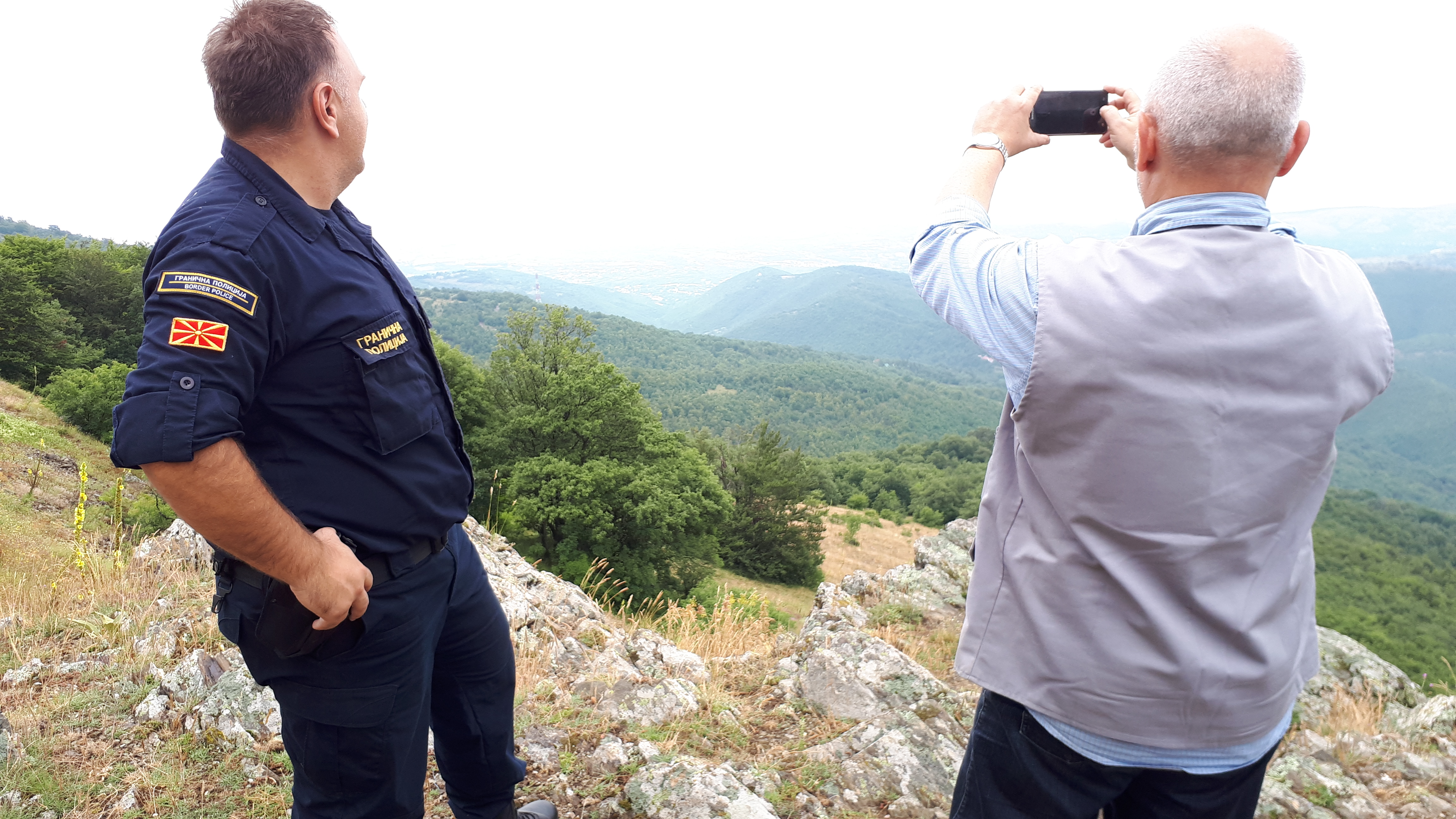 Engineer is checking the visibility for microwave data transmission along border area near Tanushevci village, 25 July 2018.