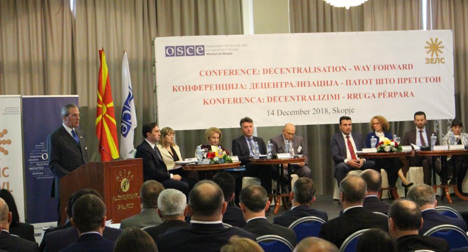 The Prime Minister, government ministers and mayors of all 81 local self-government units in the country gathered on 14 December 2018 for a national conference organized by the OSCE Mission to Skopje and the Association of Municipalities (ZELS) to discuss the remaining challenges related to the decentralization process.