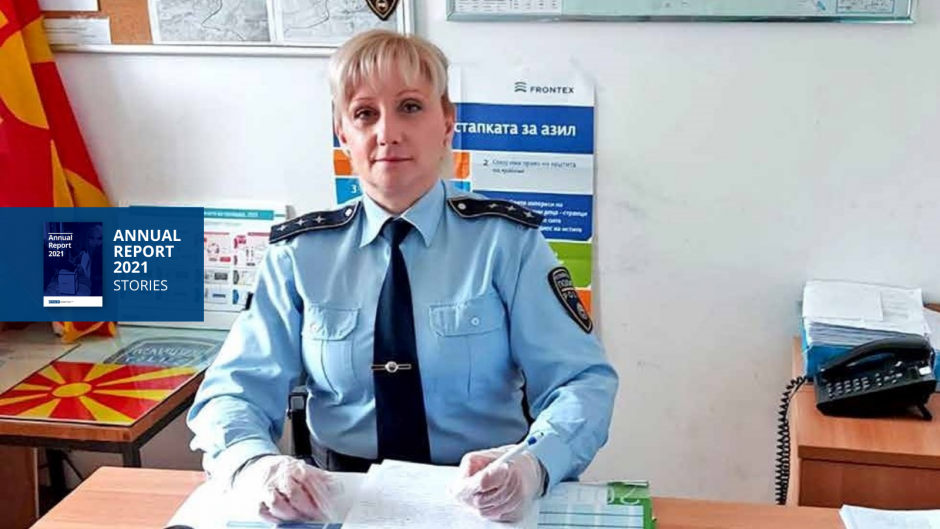 Commander Maja Stojanovska in her office at the Kisela Voda Police Station in Skopje.