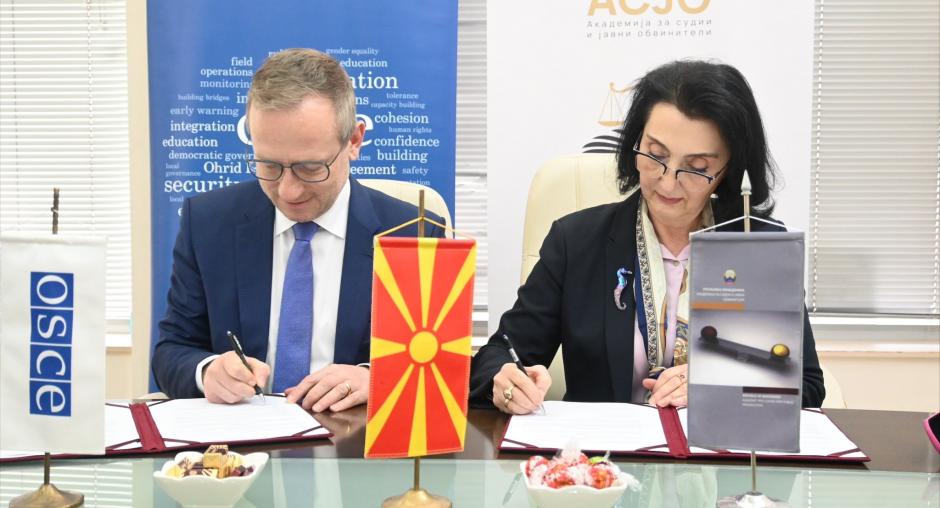 SKOPJE, 27 February 2023 — In order to improve quality of justice, the OSCE Mission to Skopje has signed a Memorandum of Understanding agreement with the national Academy for Judges and Public Prosecutors (AJPP).