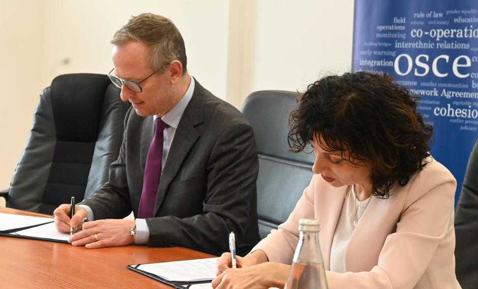 Head of the OSCE Mission to Skopje, Kilian Wahl, signs Memorandum of Understanding with Biljana Ivanovska, president of the State Commission for Prevention of Corruption, Skopje, 6 March 2023.
