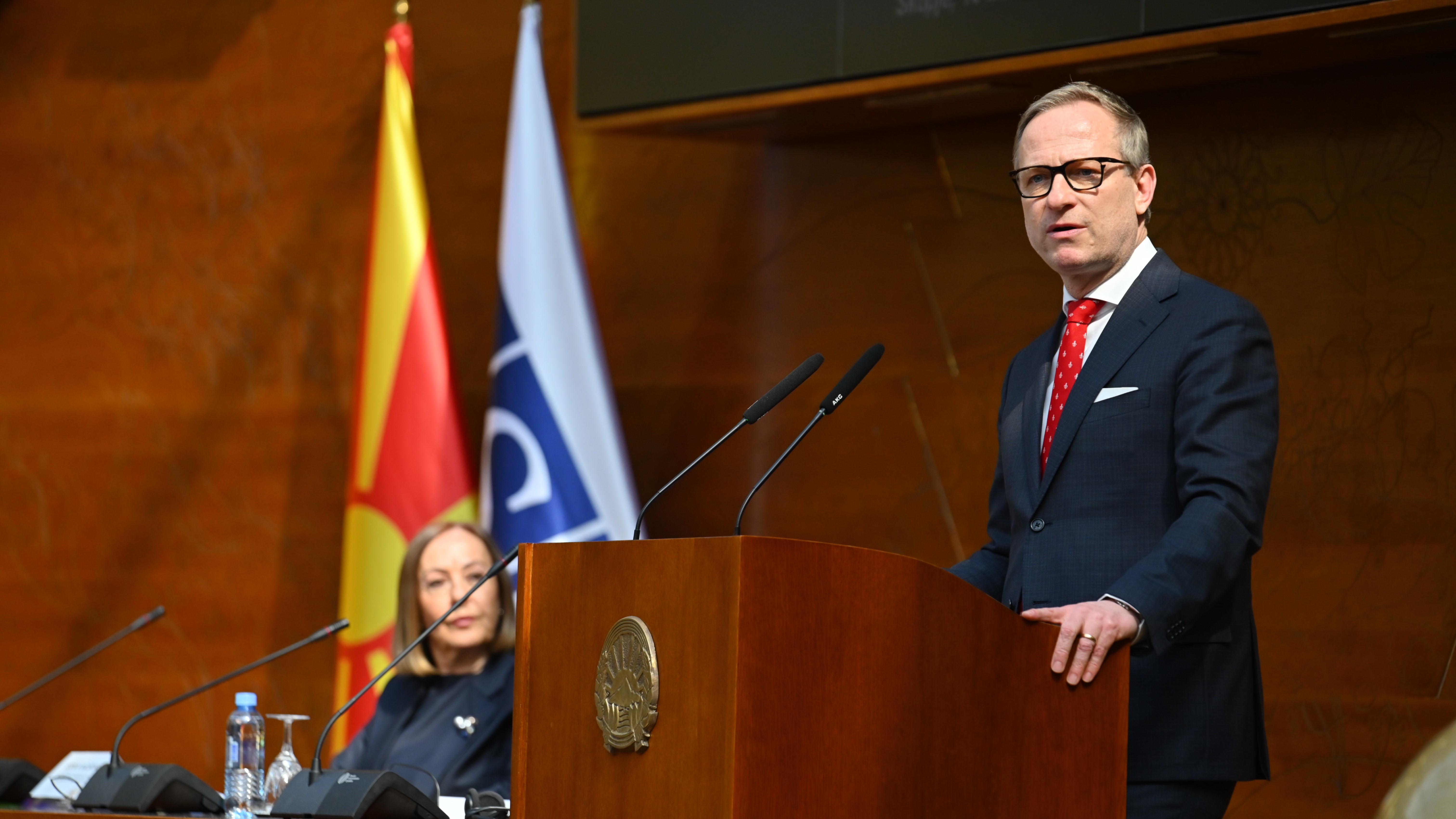 Head of the OSCE Mission to Skopje, Ambassador Kilian Wahl, delivers his opening remarks at the international conference marking the 60th Anniversary of the Constitutional Court of the Republic of North Macedonia, Skopje, 2024
