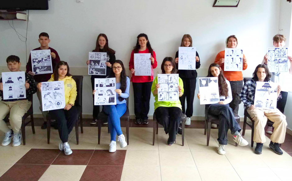Participants of the comic competition “Give Inclusion a Chance!”, as part of Mission-supported ‘Building New Bridges’ project. Veles, 17 May 2024