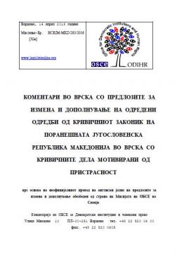 КОМЕНТАРИ ВО ВРСКА СО ПРЕДЛОЗИТЕ ЗА ИЗМЕНA И ДОПОЛНУВАЊE НА ОДРЕДЕНИ ОДРЕДБИ ОД КРИВИЧНИОТ ЗАКОНИК НА ПОРАНЕШНАТА ЈУГОСЛОВЕНСКА РЕПУБЛИКА МАКЕДОНИЈА ВО ВРСКА СО КРИВИЧНИТЕ ДЕЛА МОТИВИРАНИ ОД ПРИСТРАСНОСТ