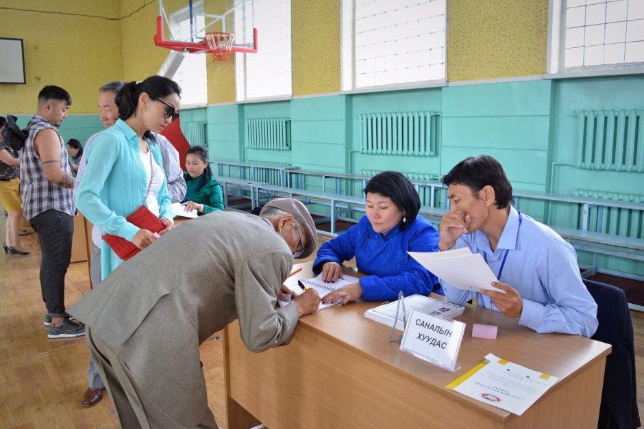 Монгол Улсын дараагийн ерөнхийлөгчийг сонгохоор санал хураах байранд ирсэн сонгогчид. 2017 оны 6-р сарын 26.