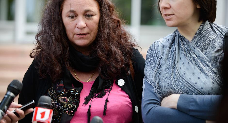 The Head of the OSCE Mission to Moldova, Ambassador Jennifer Brush, talks to journalists during a visit to Rybnitsa, 24 April 2013. (OSCE/Igor Schimbator) Photo details