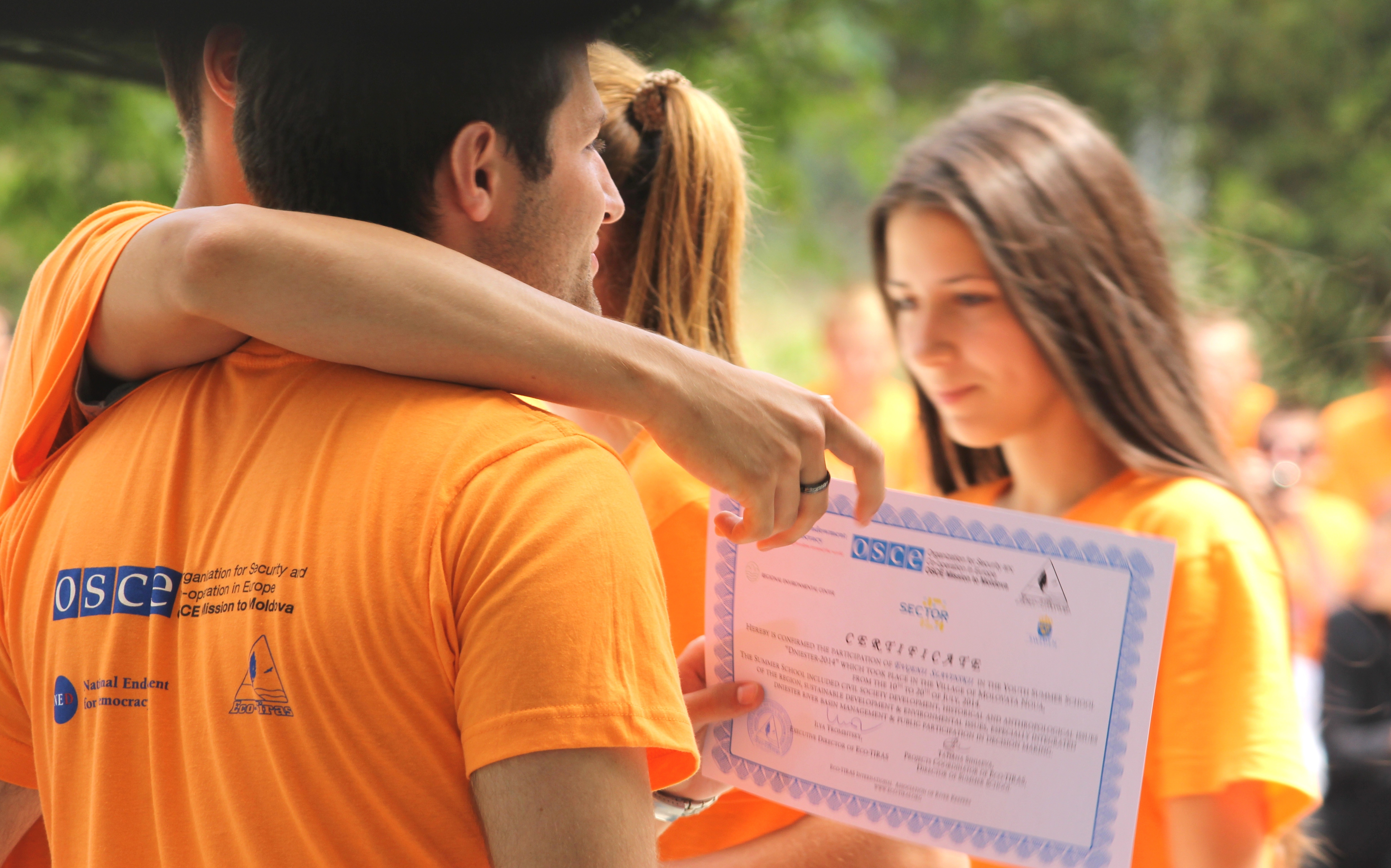 Participants of the Summer School during the project’s closing ceremony. “This river is seen in many ways as a dividing line, but with this Summer School we wanted to show that it can also unite,” said Maurice Dunand from the OSCE Mission to Moldova, Molovata Noua, 20 July 2014.