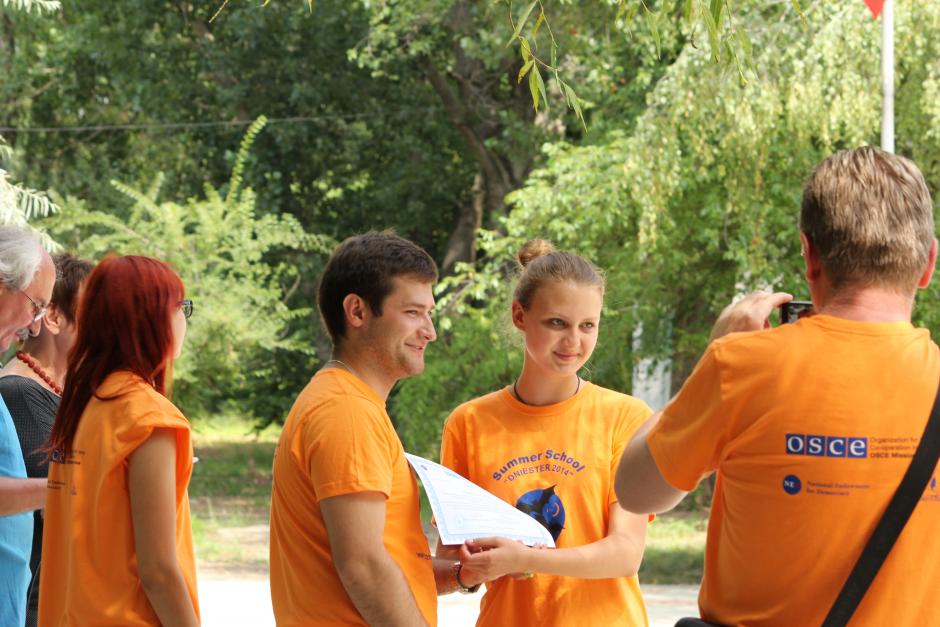 Students of the Summer School taking pictures after receiving certificates of participation. They’ve learned about how the Dniester/Nistru can be a source for confidence building between communities residing on both sides of the river, Molovata Noua, 20 July 2014.