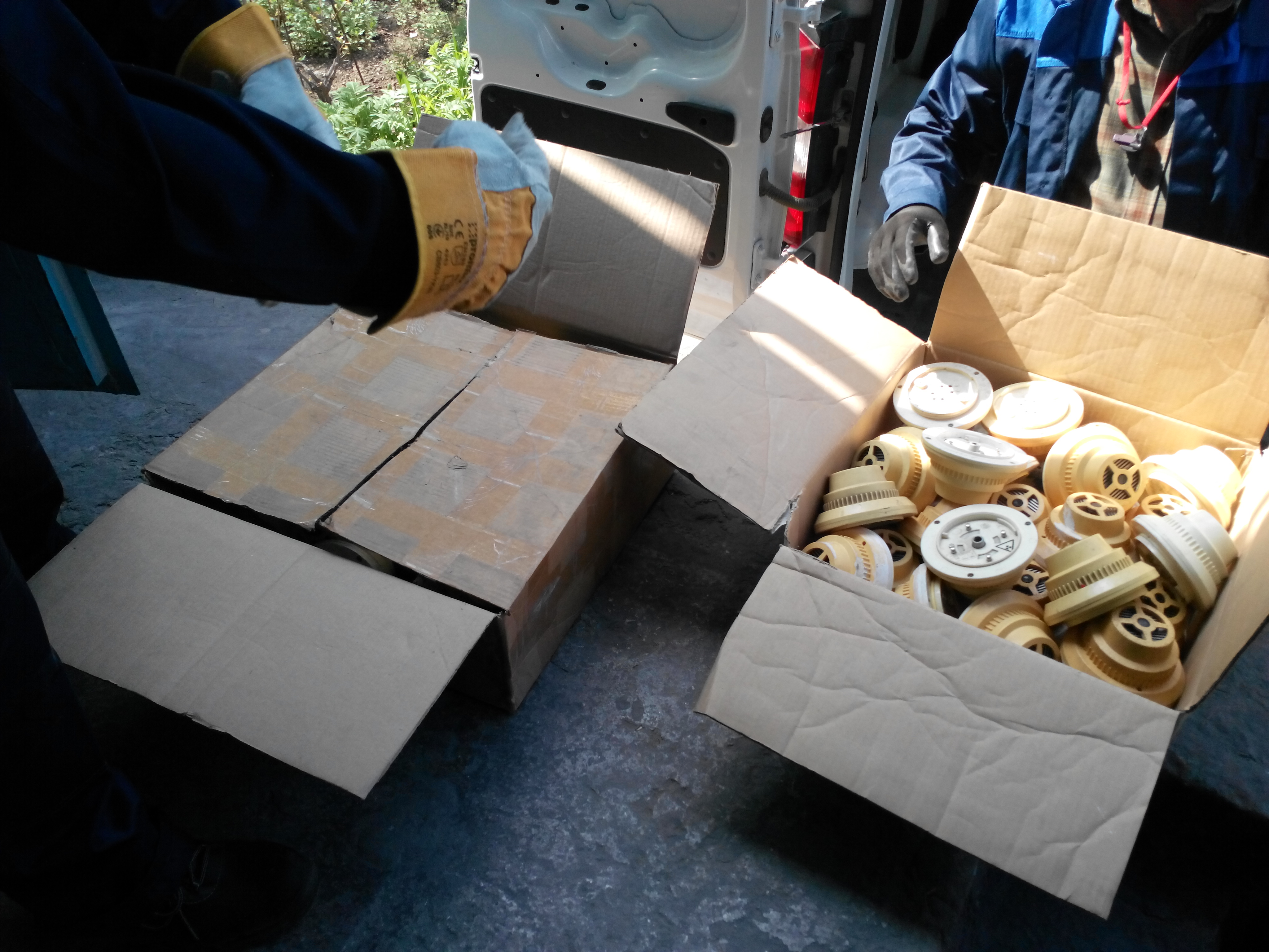 Removal of over 100 slightly radioactive smoke detectors from a metallurgic plant, Ribnita, facilitated by the OSCE Mission to Moldova, 28 April 2015.