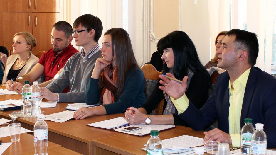 Participants during a Human Rights Club meeting for lawyers from both banks of the Dniester/Nistru River, hosted by the OSCE Mission to Moldova, Tiraspol, 30 October 2015.