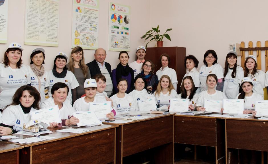 Students and teachers of social work from the Pedagogical College in Balti present their diplomas following a seminar on combating domestic violence organized by the OSCE Mission to Moldova, Balti, 8 December 2015.